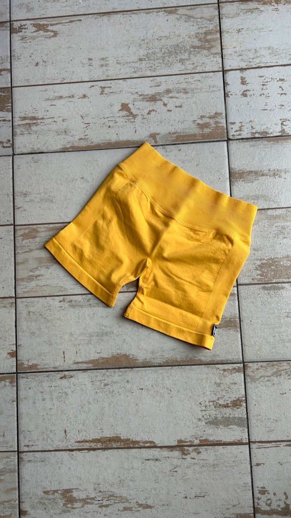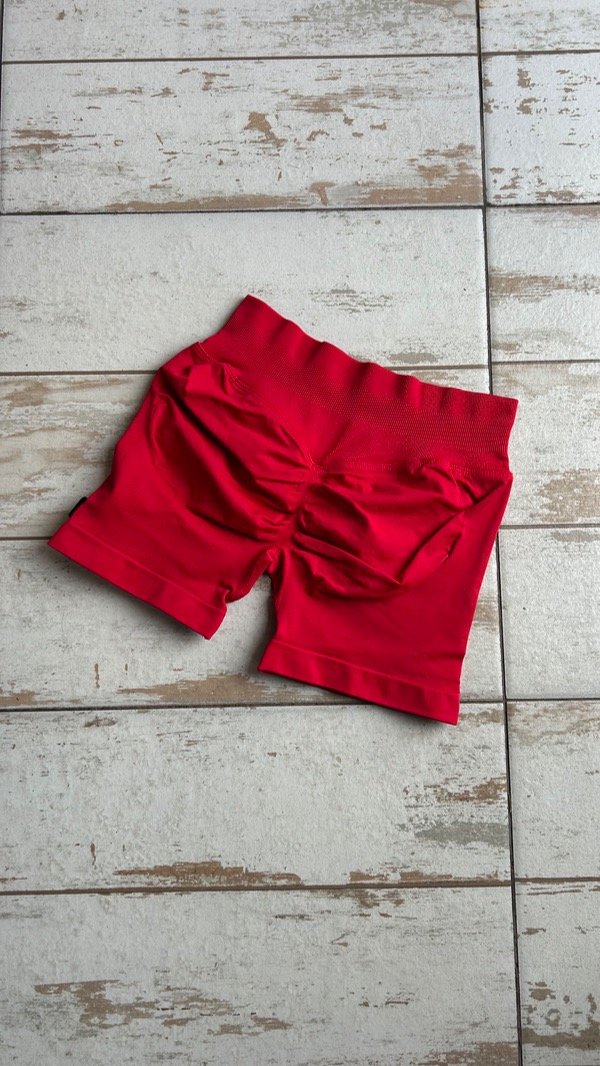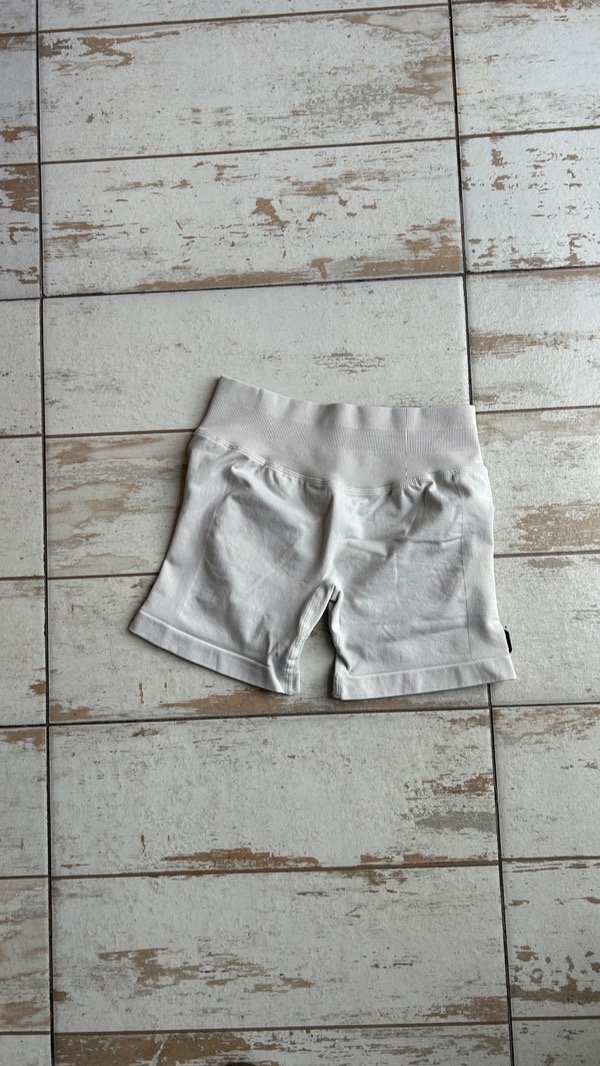 Calza corta con frunce y cintura alta.