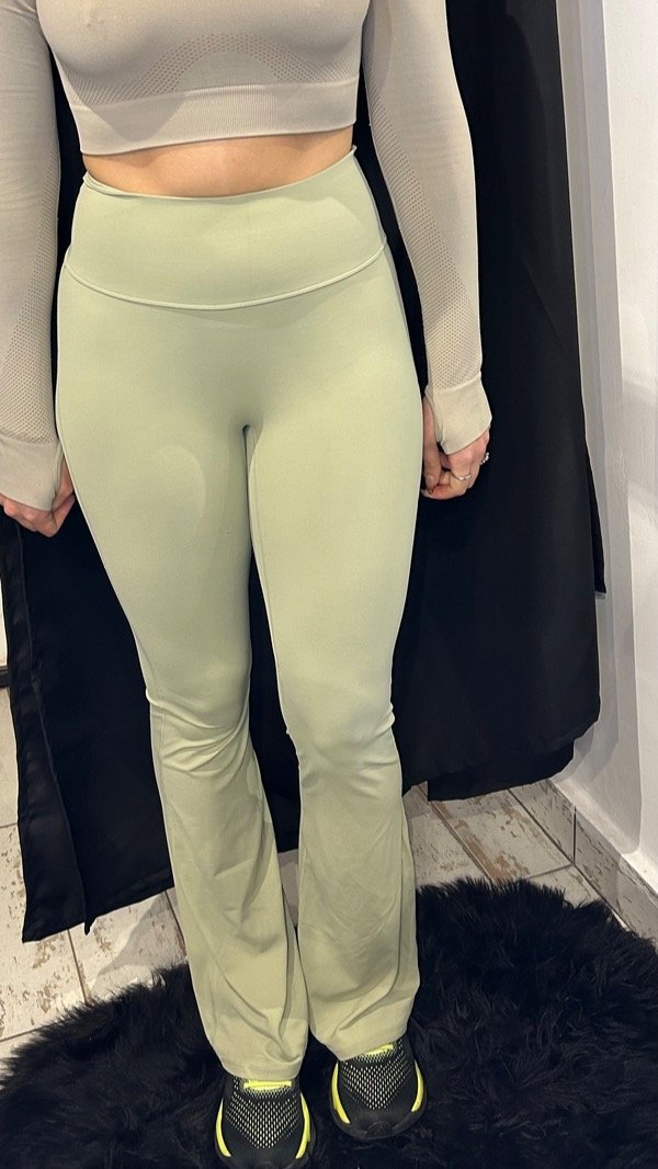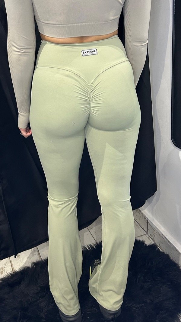 Calza de Yoga de pierna ancha, cintura alta y frunce.